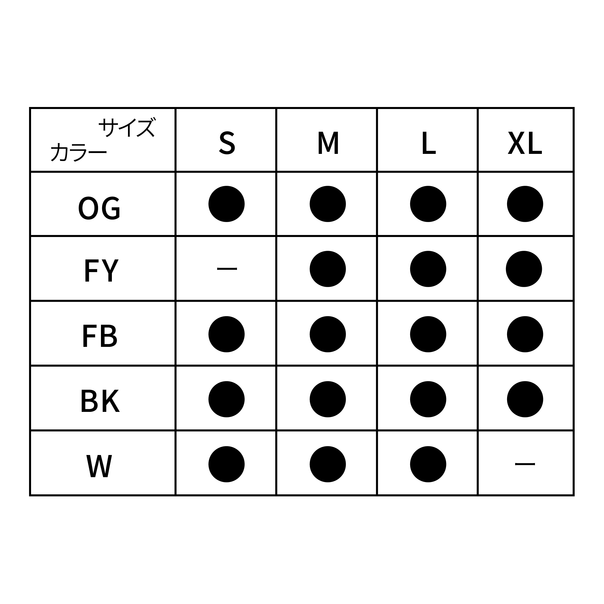 カラーにより取り扱いサイズが異なりますので、ページ上部のカラーサイズ表をご確認ください