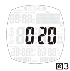 コンピュータプログラムの不具合により、ダイビング安全停止終了後”↑OK”マーク点灯開始から5秒以内に1.6mより浅い位置に移動しますと、次のダイビング中に”↑OK”マークが表示されたままの状態となり、安全停止タイマーのカウントダウンが表示されなくなります。