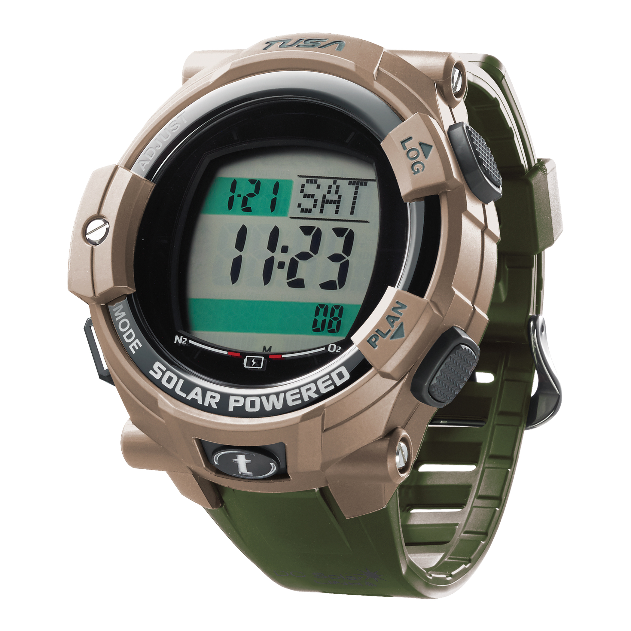 Bluetooth Smartでスマホにログデータが転送可能 4mixガス対応で本格的な加速減圧ができる ソーラー充電式ダイブコンピュータ。(EN13319対応)