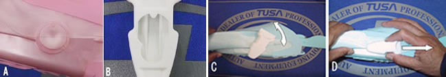 TUSAのダイビングフィンには全て、ワンタッチバックルとストラップが付いています。この世界特許を取得しているワンタッチバックルシステムによってフィンの着脱が非常に簡単に出来ます。また、ストラップによって調節が可能な為、1セットのフィンでノーマルブーツとドライスーツブーツの両方に使用できる利便性も兼ね備えており、フルフィットフィンと違いサイズを合わせるのも非常に楽です。ここで見受けられるトラブルが、受け側(メスバックル)バックルの脱落、紛失です。